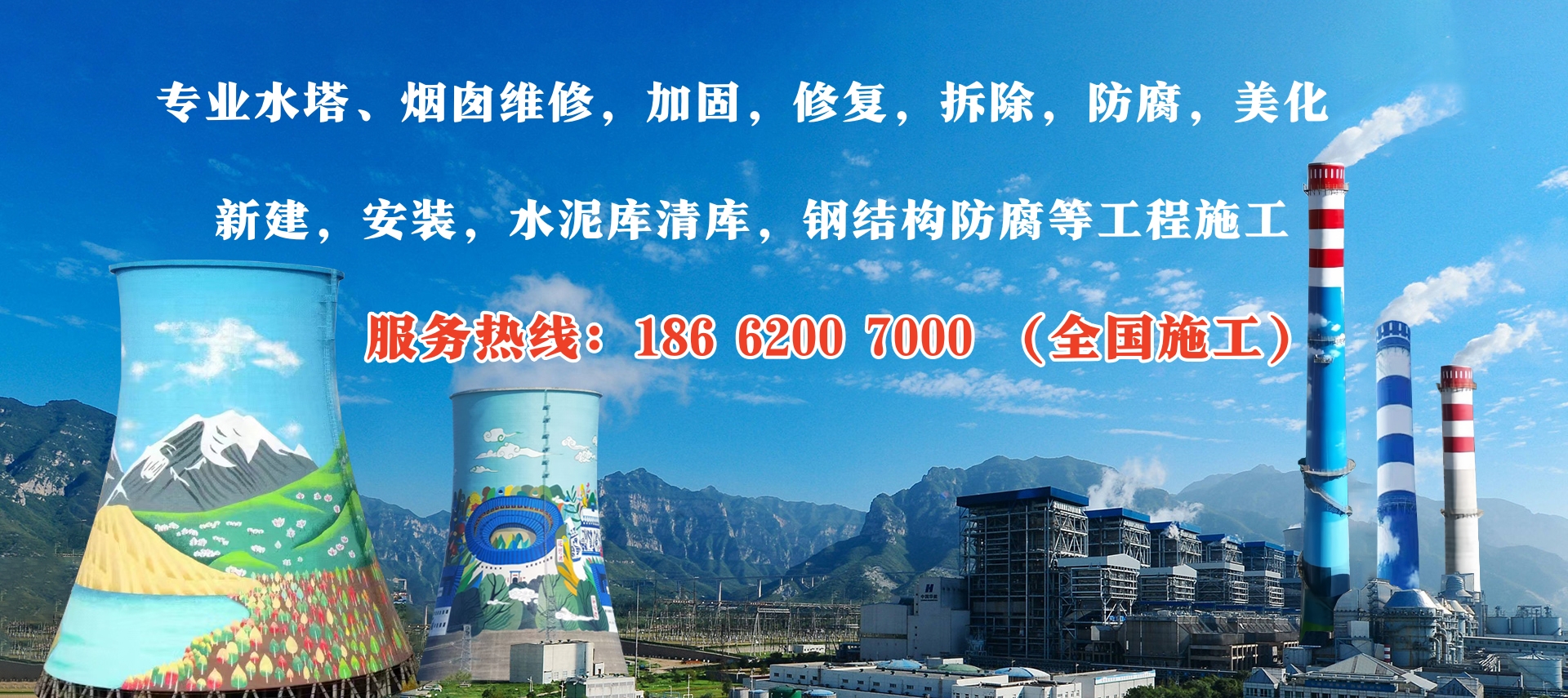 江蘇華電高空工程有限公司(全國(guó)施工)(工程熱線(xiàn):186-6200-7000)我公司專(zhuān)業(yè)承接各類(lèi)高聳構(gòu)筑物(煙囪,磚煙囪,混凝土煙囪,水泥煙囪,鋼煙囪,水塔,冷卻塔,灰?guī)欤鄮?kù),筒倉(cāng),鋼結(jié)構(gòu),爐架,碼頭,電廠(chǎng),化工廠(chǎng)等)拆除,維修,防腐,美化,改造,新建,安裝,加固,刷新,探傷,檢測(cè),脫硫,保溫,水泥庫(kù)清庫(kù),清灰,污水池防腐,鋼結(jié)構(gòu)除銹防腐,港口防腐,化工廠(chǎng)防腐,電廠(chǎng)爐架防腐等建筑工程施工的專(zhuān)業(yè)公司。